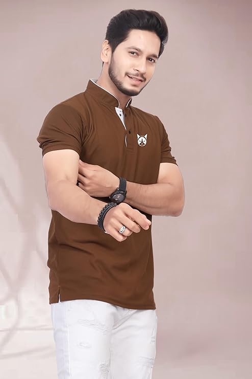 BAGHADBILLO Men’s and Boy’s Polyster T-Shirt with Mandarin Collared Neck Half Sleeves Closuer Button and Regular Fit | Polo t Shirt for Man